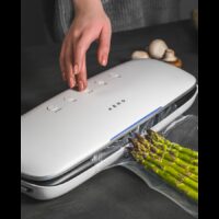 Features: Pleasant to touch cover, E-recipe book, Keep food fresh 5x longer, Fast: 1 bag vacuuming – about 10 sec, Easy to use: one touch automatic operation, Saves space in freezer, No mess in operating: special compartment for excess fluid, Perfect for food containers, Lunch sealing: perfect for kids and picnics, Keeps fresh herbs and spices, Lightweight: easy to move around, Safe to use: quick stop button, Low noise level, Suitable with all types of corrugated sealing bags, Perfect asisstant for AENO Sous Vide, Bag locking system: keep your hands free, Compact and ergonomic design, Powerful: 75kPa suction strength, 4.5L/min, 3 modes of operation: pulse, vacuum&seal, seal, Vacuum dry or moist products: choose the DRY for solid food and the MOIST for poached, simmered or steamed food., Ideal for delicate products: pulse mode, Perfect for fast pickling, Safe time: organize portioned food for whole week, Light indication: red – dry mode, blue – moist mode, Accessories included: container adapter, 10 bags (5 pcs 15 cm ? 20 cm, 5 pcs 20 cm ? 30 cm), Multipurpose use: 3 operation modes