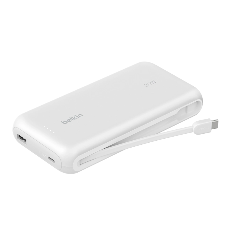 Charge up to 30W with our lightweight 20K§ power bank. Its integrated USB-C® cable design offers a convenient