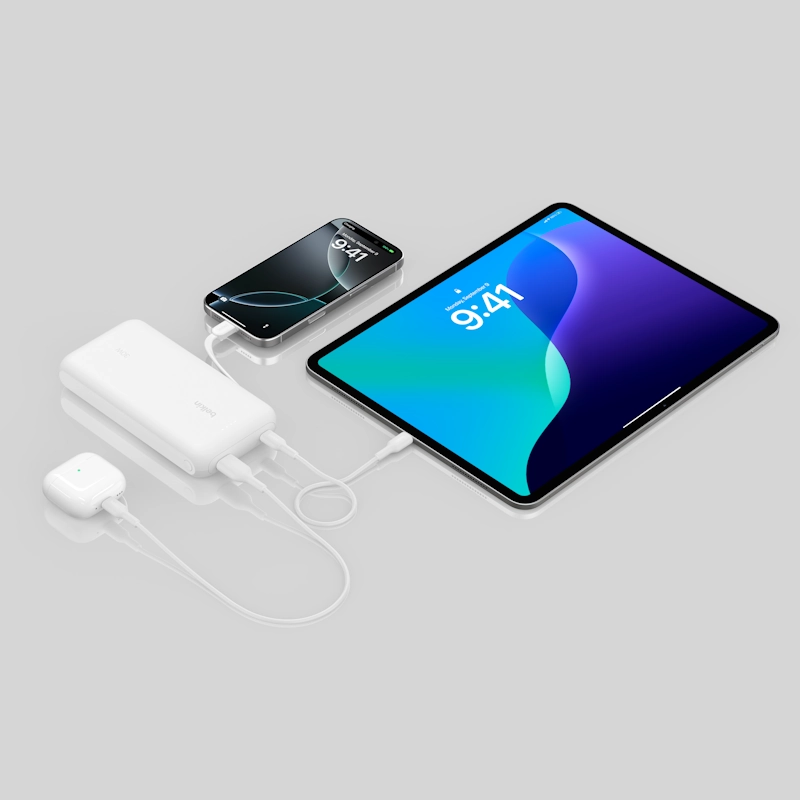 - 20K battery capacity provides 87 hours of playback for an iPhone 16 Pro‡