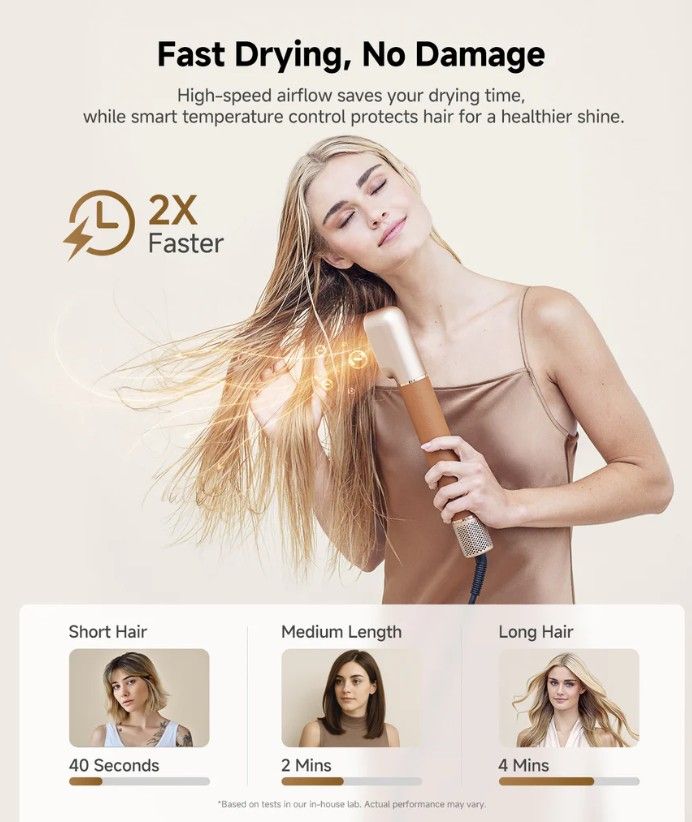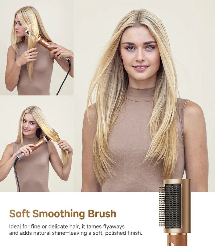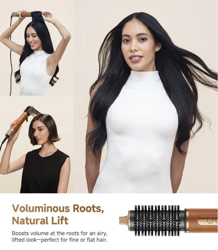 Više nastavaka za različite stilove – uključuje 2 automatska nastavka (32 mm za uvijanje u suprotnim smjerovima), sušač, alat za izravnavanje izbočenih vlasi, meku i tvrdu četku za izravnavanje te okruglu četku za volumen. Svi dodaci imaju magnetski snap-on sustav.